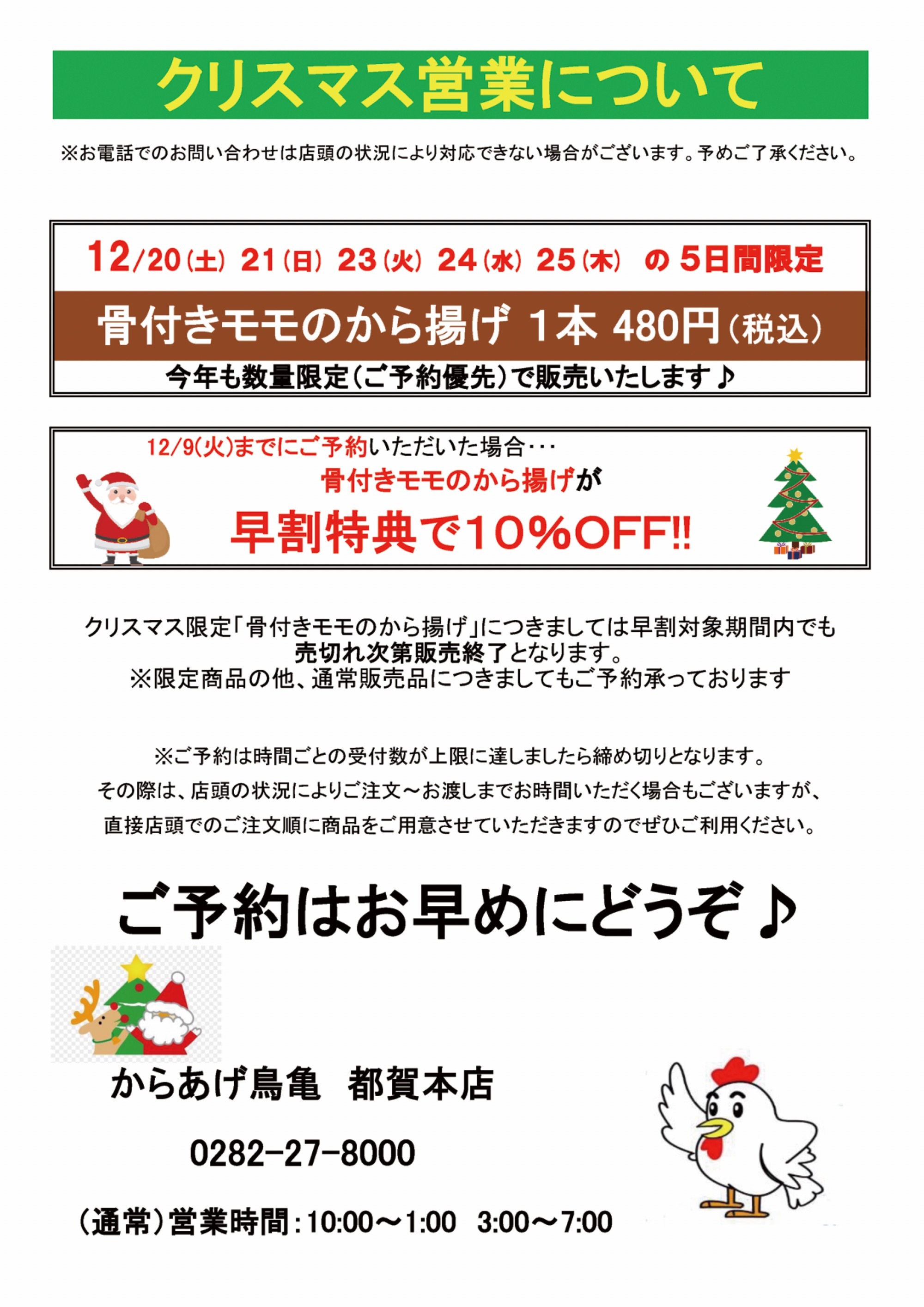 クリスマス営業(早割)について